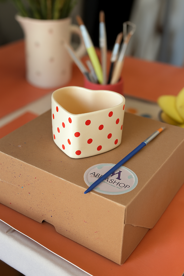 Incluye un contenedor de cerámica en forma de corazón, perfecto para pintar con engobes (Colores para cerámica) y sellar con barniz, convirtiéndolo en un objeto decorativo único: ideal para usar como porta-accesorios, lapicero, mini macetita o simplemente como un detalle amoroso en tu espacio.